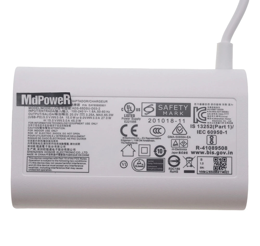 3. Output : 20.0V 3.25A 65.0W USB-PD 5.0V 3.0A 15.0W OR 9.0V 3.0A 27.0W OR 15.0V 3.0A 45.0W