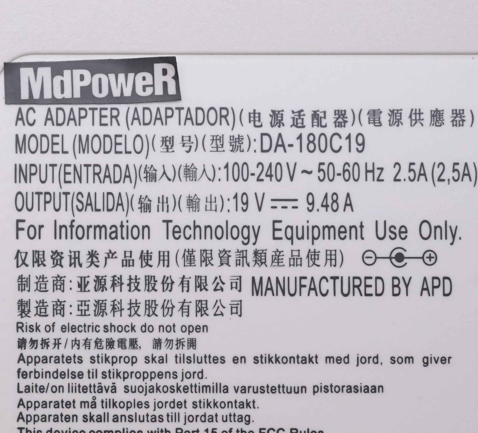 4. Output : 19V 9.48A