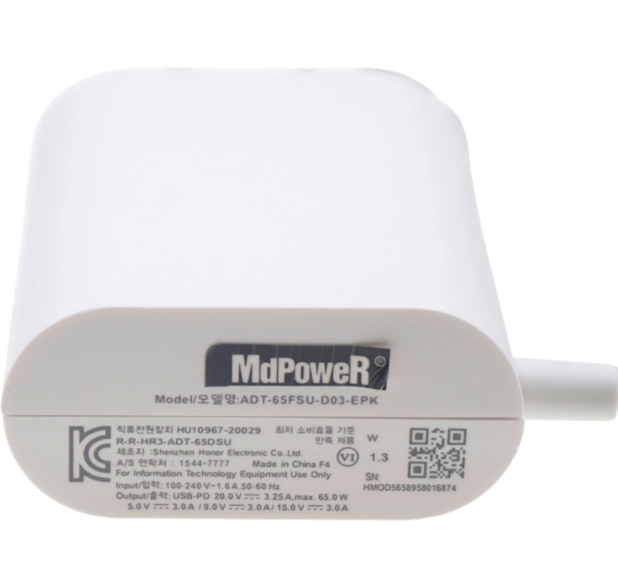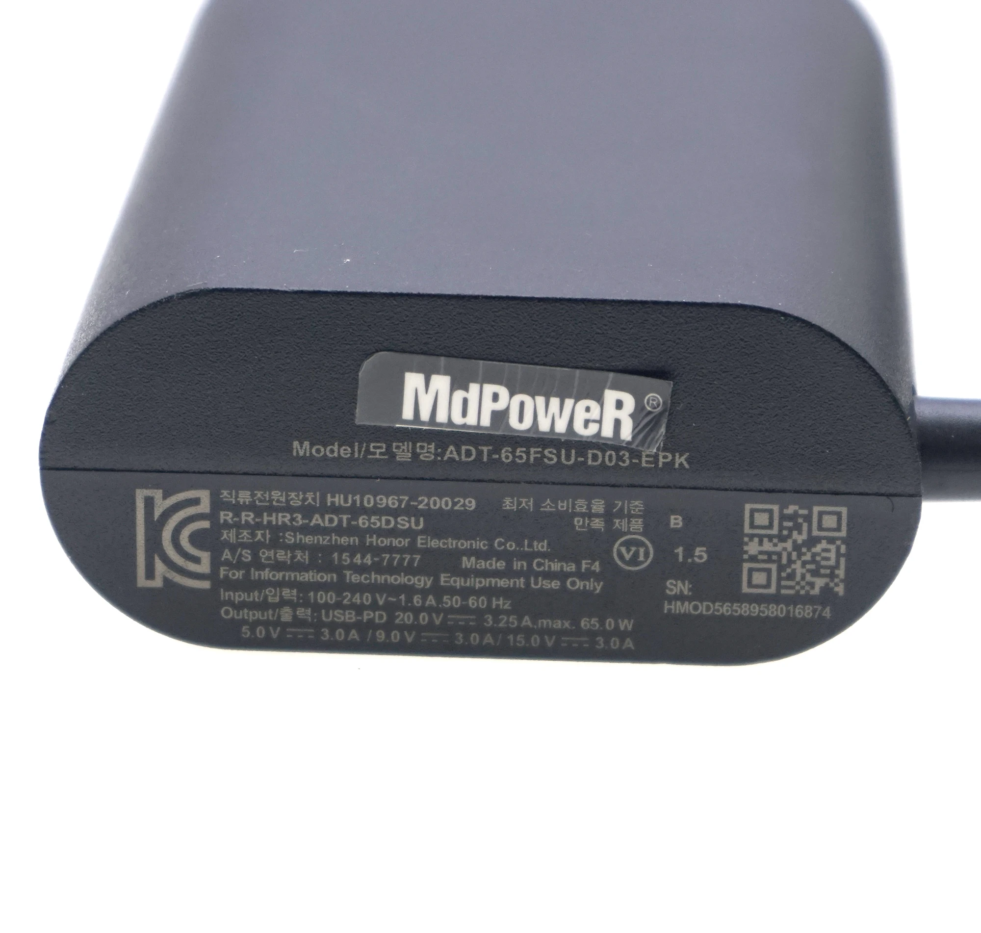 3. Output : 20.0V 3.25A 65.0W USB-PD 5.0V 3.0A 15.0W OR 9.0V 3.0A 27.0W OR 15.0V 3.0A 45.0W