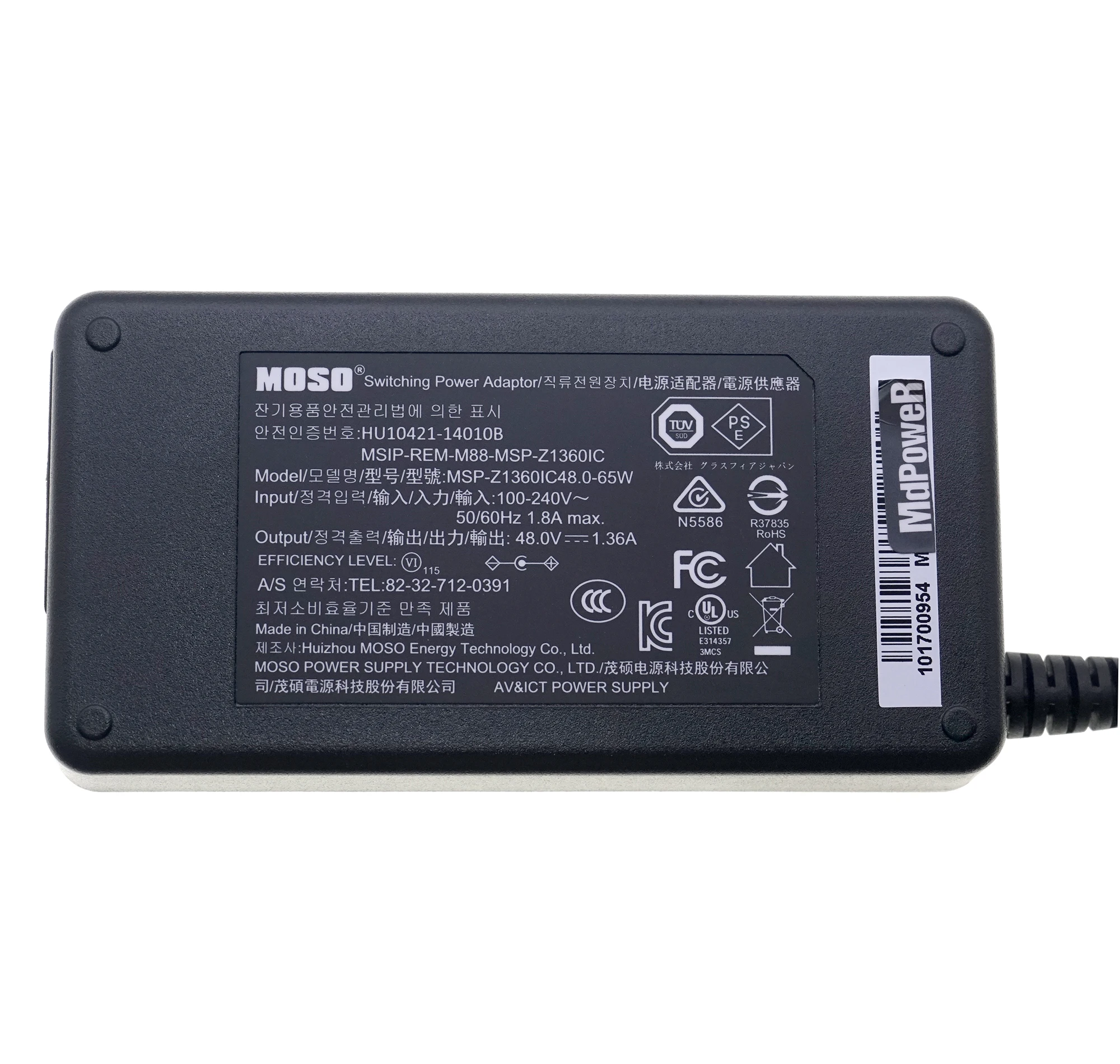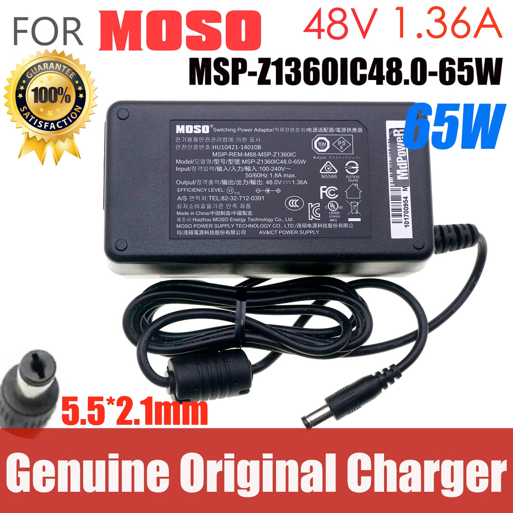 Genuine 48V 1.36A 65W MSP-Z1360IC48.0-65W HU10421-140108 AC Adapter For Hikvision MOSO Video Recorder POE Power Supply Charger