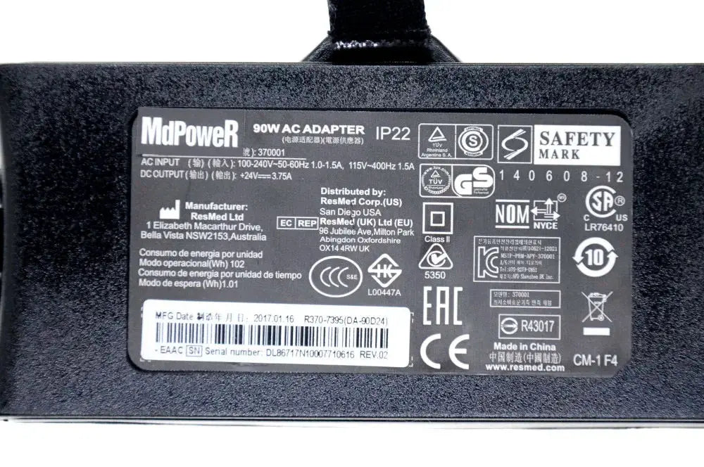 Genuine 90W AC Adapter for ResMed Air Sense/CURVE S10 370001 370002 37015 370028 DA90A24 R370-7232 Power Supply 24V 3.75A IP22