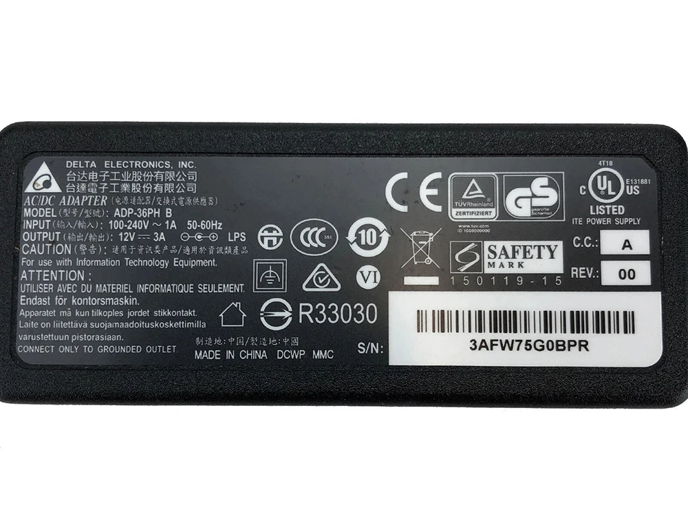 Genuine DELTA ADP-36PH A 12V 3A 5.5x2.5mm AC DC Adapter For 36W Monitor Power Supply Charger ADP-36JH A B
