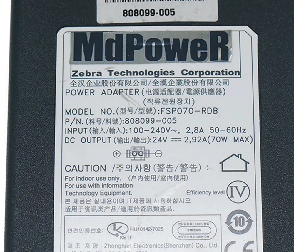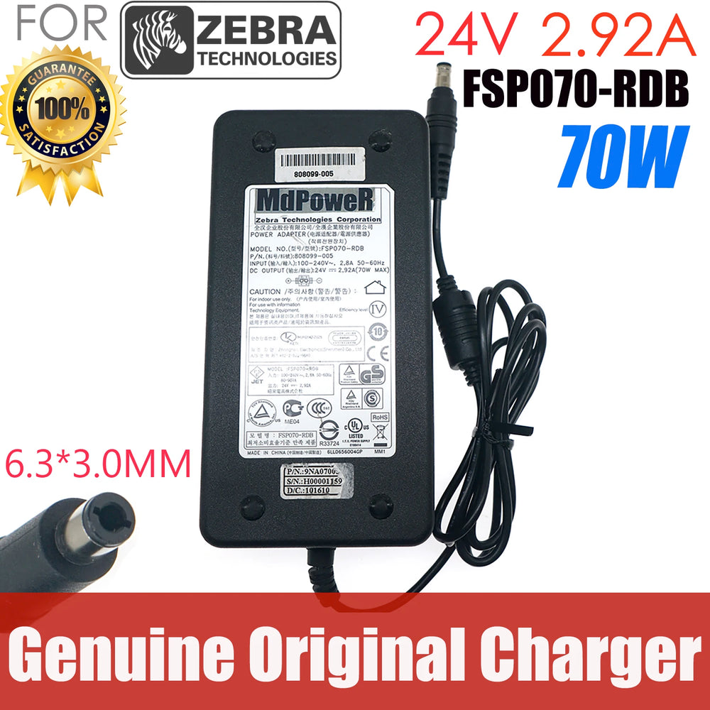 Genuine FSP FSP070-RDB 808099-001 24V 2.92A AC DC Adapter Charger for Zebra Printer Scanner Power Supply FSP070-RDBM 9NA0700700