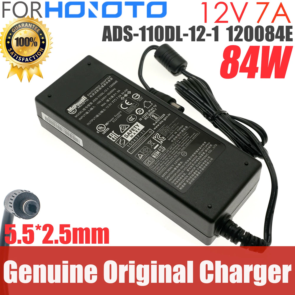 Genuine HONOTO Switching Adapter AC Charger ADS-110DL-12-1 120084E 12V 7A 84W 5.5x2.5mm For LaCie Power Supply Original