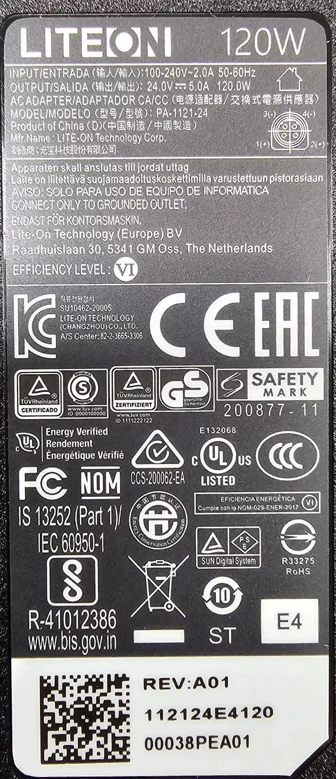 Genuine LITEON PA-1121-24 24V 5A 120W AC Adapter Charger Power Supply 4 Pin Din Plug