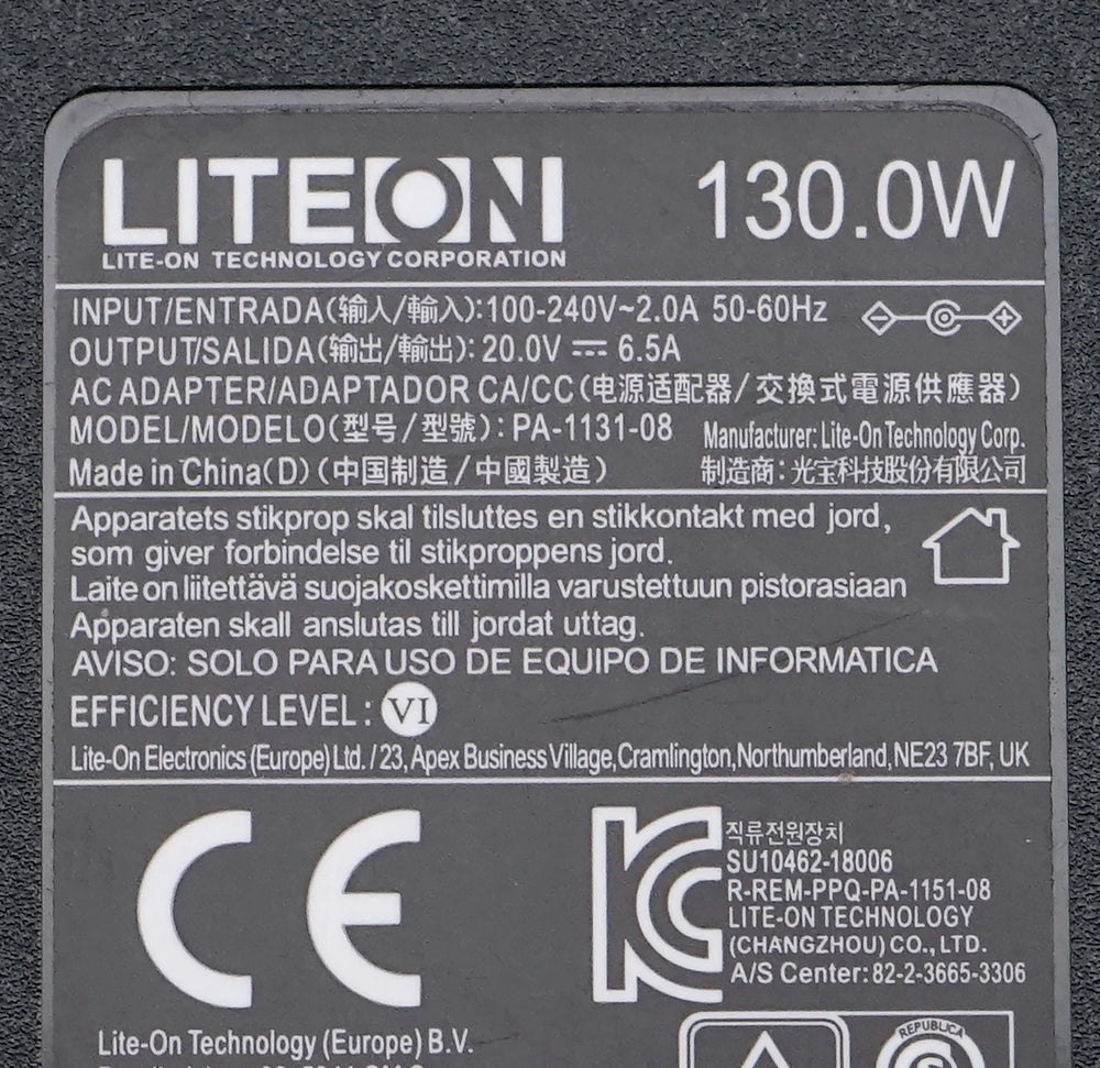 Genuine Liteon PA-1131-08 AC Adapter 20V 6.5A 130W Charger Power Supply 7.4 x 5.0mm lock connector Tip