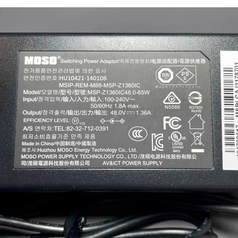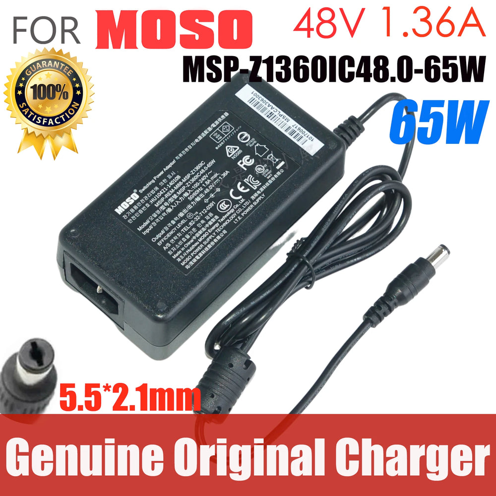 Genuine MOSO MSIP-REM-MSP-Z1360IC AC Adapter Charger 48V 1.36A MSP-Z1360IC48.0-65W For HIKVISION Video Recorder POE Power Supply