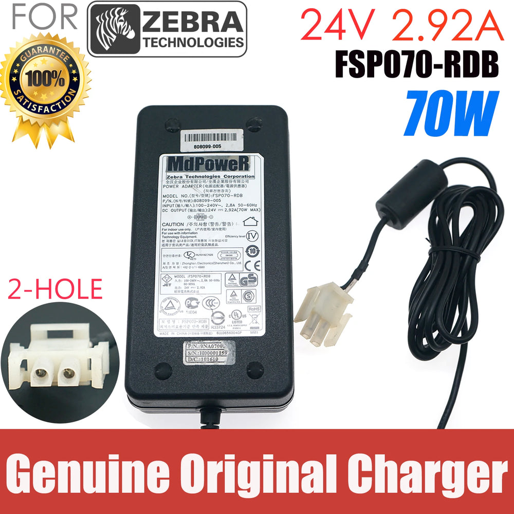 Genuine Power Adapter Charger FSP070-RDB 24V 2.92A 2 hole for Zebra Printer Scanner Power Supply 808099-005 9NA0700502