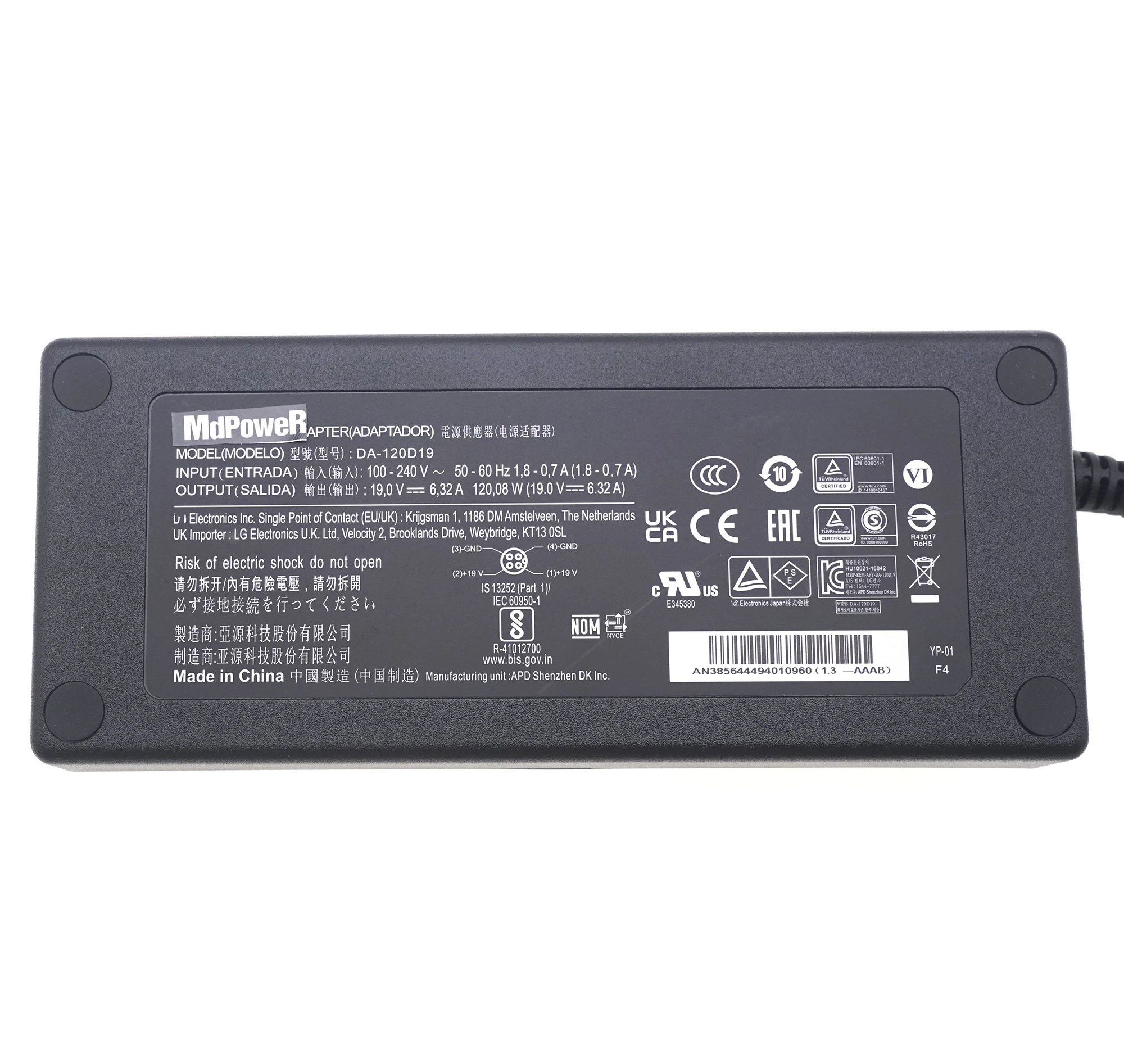 Original 19V 6.32A FOR LG AC/DC Adapter 27HJ713S-W DA-120D19 27'' 32HL710S-W 31.5" 4K IPS UHD Surgical Medical Grade Monitor