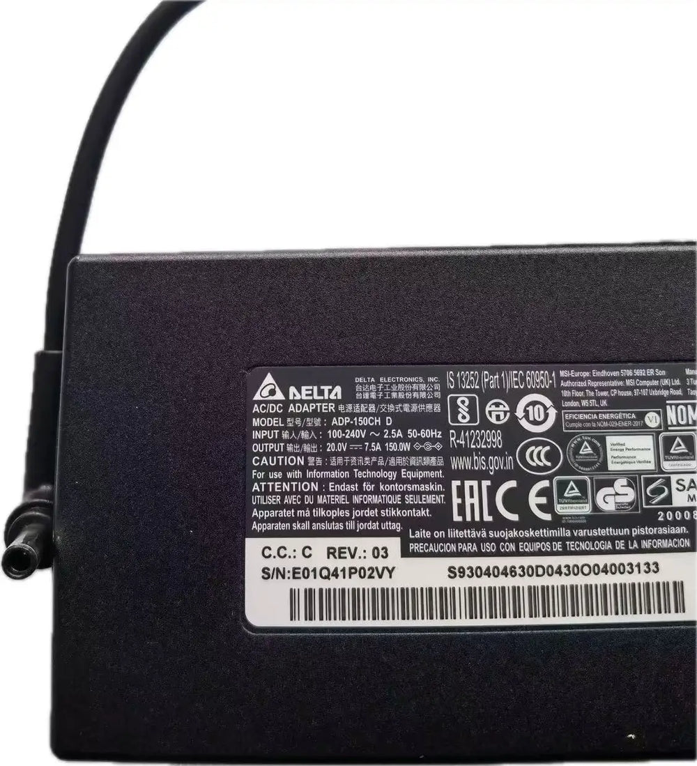 Original DELTA ADP-150CH D 20V 7.5A 150W 4.5*3.0mm Laptop Charger AC Adapter For MSI GF76 GF66 UC11 GL66 Power Supply A18-150P1A