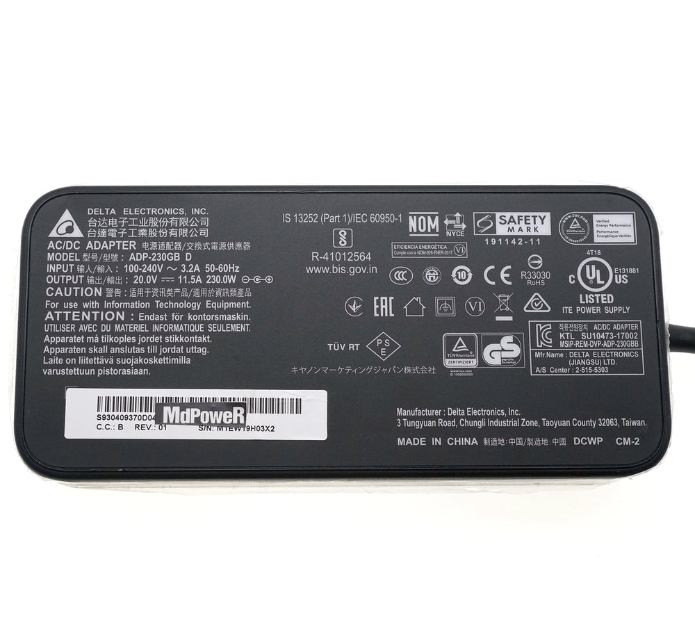 Original Delta ADP-230GB D 230W 20V 11.5A AC Adapter Charger for MSI WS66 11UMT-220GS66 GS75 GS66 10UE-280CA STEALTH Laptop