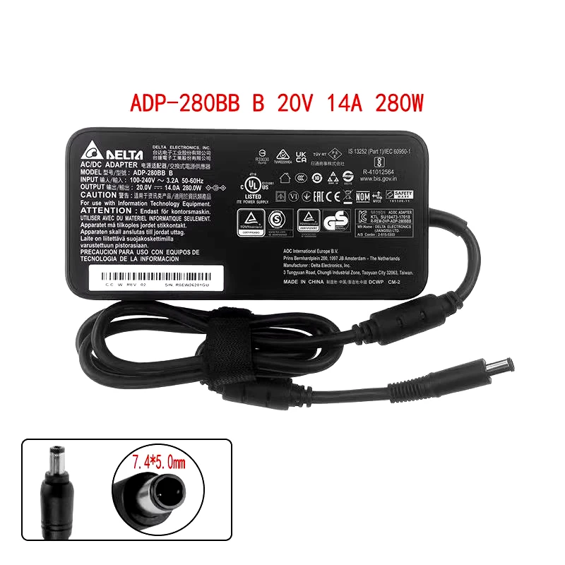 Original Delta ADP-280BB B 280W 20V 14A 7.4*5.0mm AC/DC Adapter OEM Charger for MSI GE75 Raider 9SG/RTX2080 Series Power Supply