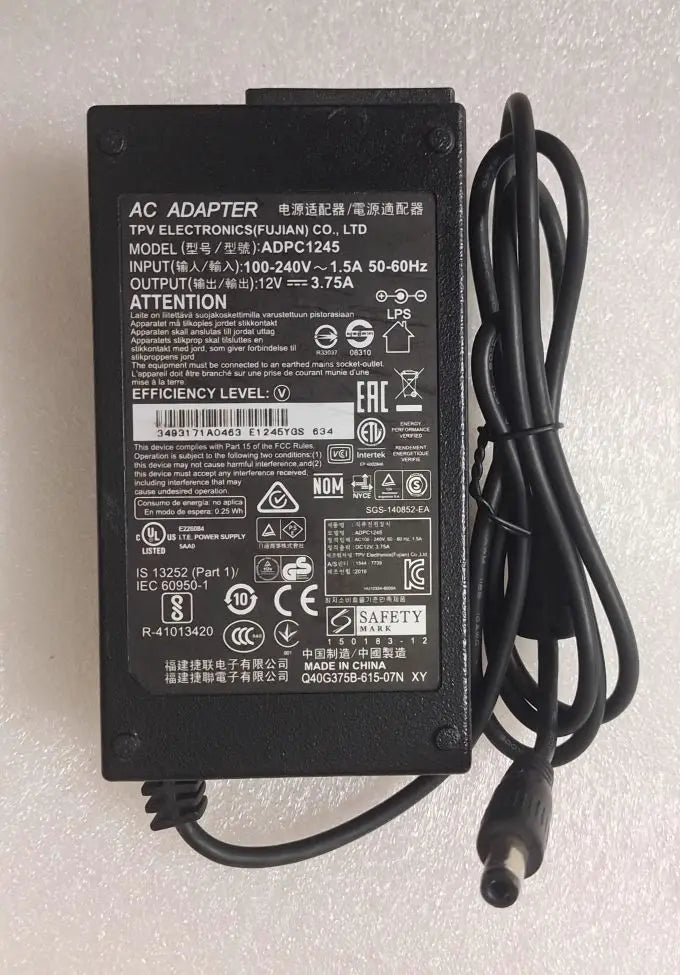 Orignal ADPC1245 12V 3.75A AC Power Adapter ADPC12416AB Charger For AOC 230LM00023 For PHILIPS 239C4Q E2271HDS 227E4QH 239C4QHSW