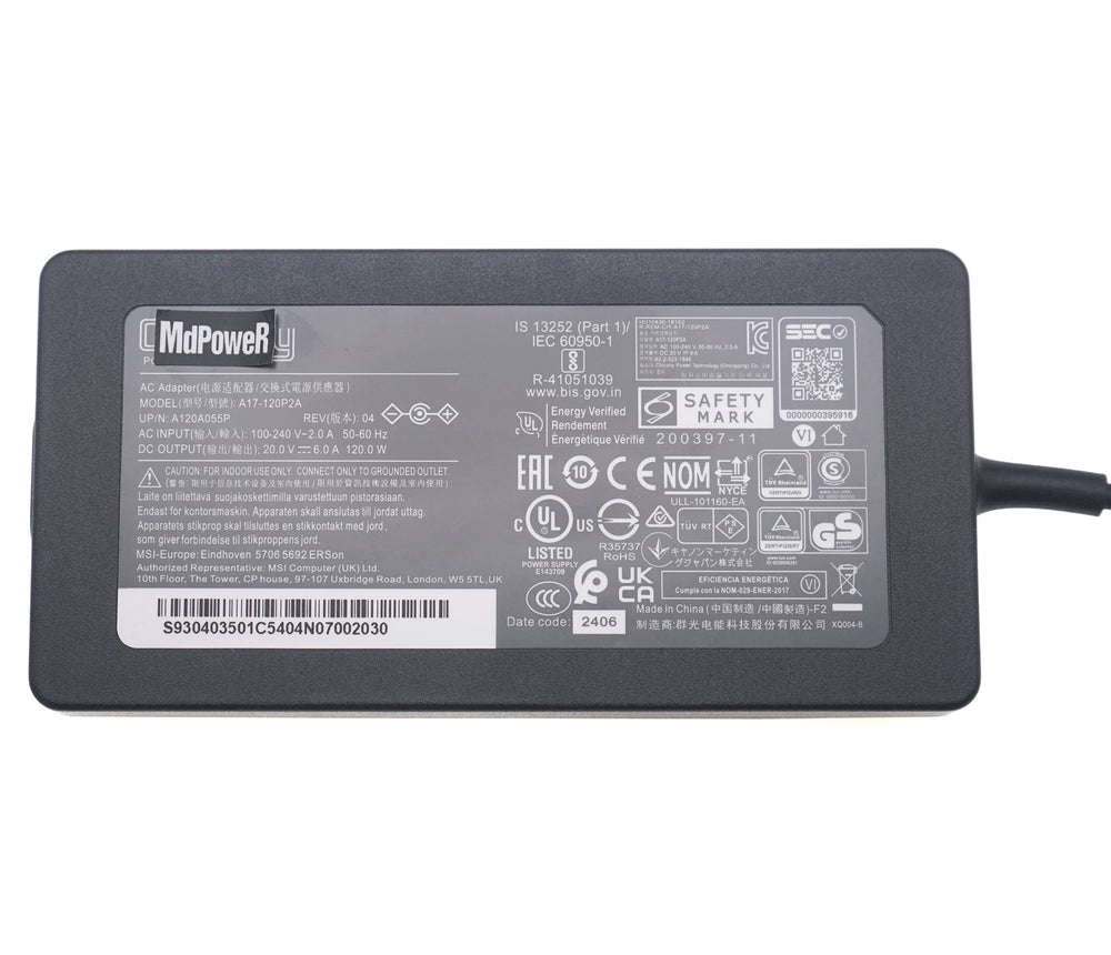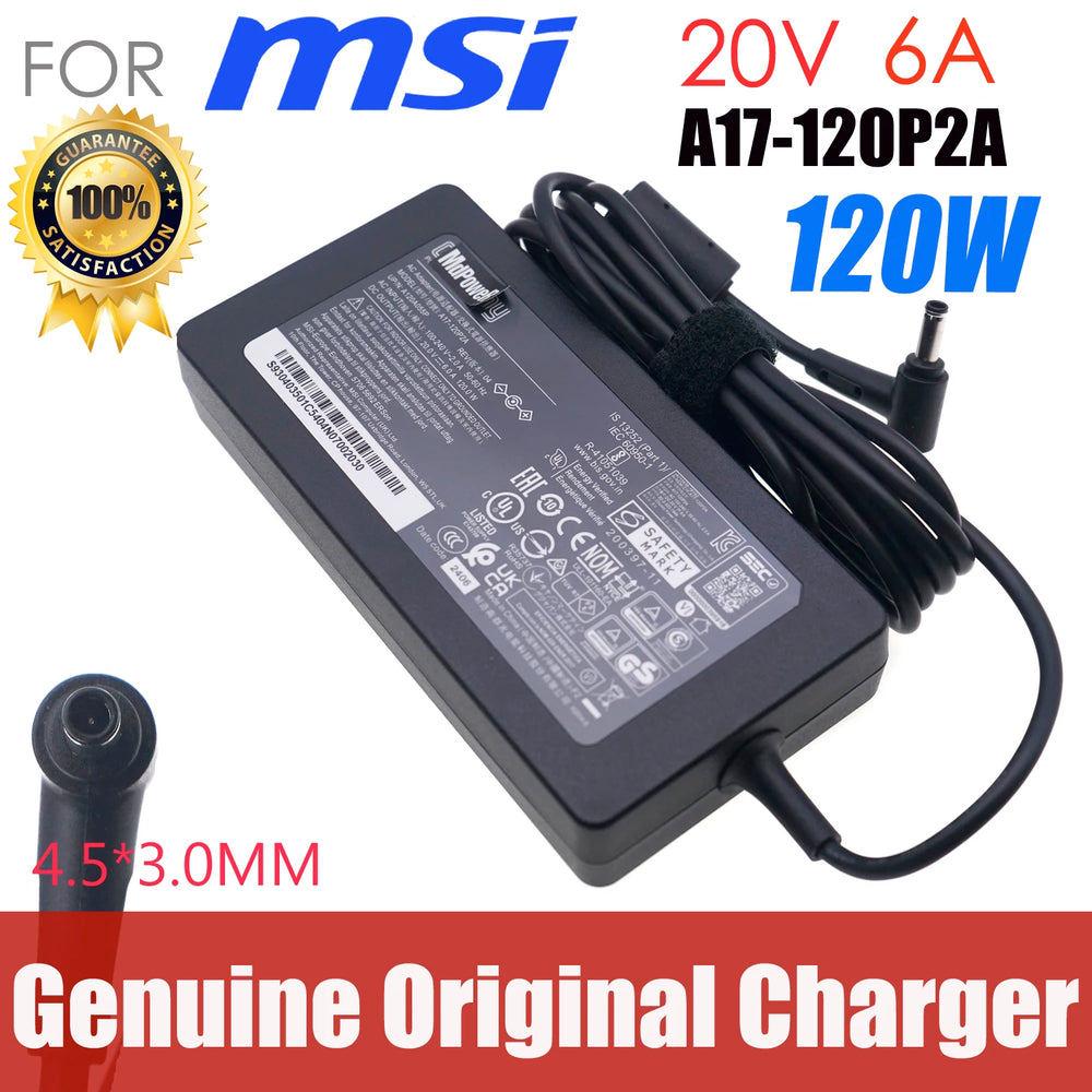 Replacement Laptop Charger For Chicony A17-120P2A For MSI GF63 THIN MS-16R5 A12A055P 20V 6A 120W Power Supply Adapter 4.5x3.0mm